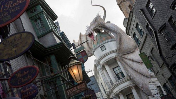 image of Gringotts Wizarding bank with a dragon atop it.